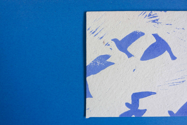 Fabriquées avec du papier recyclé fait à la main, le motif est imprimé avec une technique de linogravure